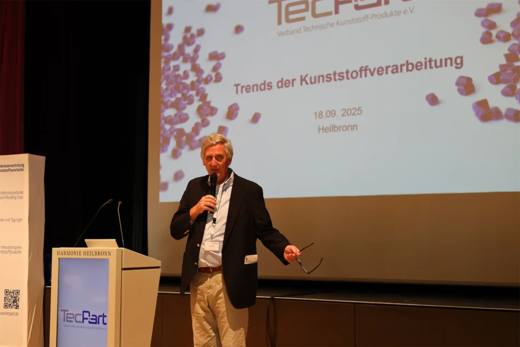 Am 18. September 2025 traf sich die Kunststoffbranche in Heilbronn zur TecPart-Jahrestagung „Trends der Kunststoffverarbeitung“ – mit rund 150 Teilnehmern und damit Rekordbeteiligung. Das Programm bot eng getaktete Fachimpulse für die Kunststoffverarbeitung: diskutiert wurden Marktentwicklungen, neue Absatzsegmente, Kunststoffrecycling in der Automobilindustrie sowie die Bedeutung aktueller Regulierung für den Industriestandort Deutschland. Ein Highlight war der neue „Fitness Check für Unternehmen“, ein (für Verbandsmitglieder kostenfreies) Tool zur Analyse der betrieblichen Krisenfestigkeit. In Keynotes und Fachbeiträgen zeigten Referenten und Referentinnen, wie Innovation, Kreislaufwirtschaft und Mittelstand zusammenspielen und der Kunststoffverarbeitung neue Chancen eröffnen. Für eine angemessen stimmungsvolle Netzwerkoption sorgte abschließend das exklusive Dinner mit Blick über die Heilbronner Weinlandschaft.